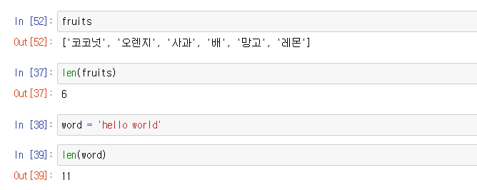 fruits라는 리스트가 있을 때 그 안에 들어있는 항목의 갯수를 확인하기 위해서는 len( fruits )를 이용하면 된다.