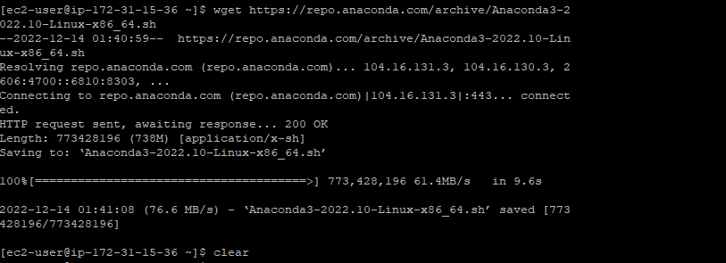 cd ~ 명령어를 이용하여 디렉토리를 이동한 후, 복사한 링크 주소를 붙여넣기 해준 후 엔터를 하면 다운로드가 된다.