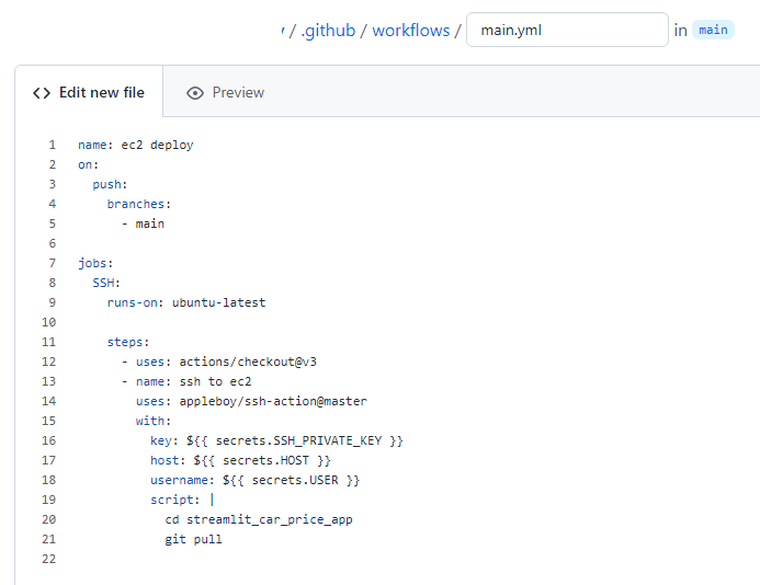 github actions 를 모두 설정하였다면, 이제 putty 를 이용하여서, streamlit 을 서버에 배포하면 된다.