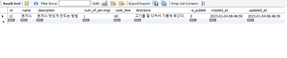 # 2. 이 레시피 정보를 DB에 저장해야한다.