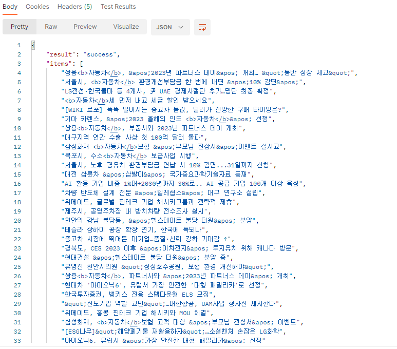 - 자동차라고 검색한 뉴스 기사 데이터를 30개만 가져올 것이다.