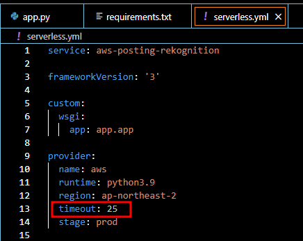 수정을 한 후 서버에 sls deploy 를 하여서 서버에 재배포를 한다.