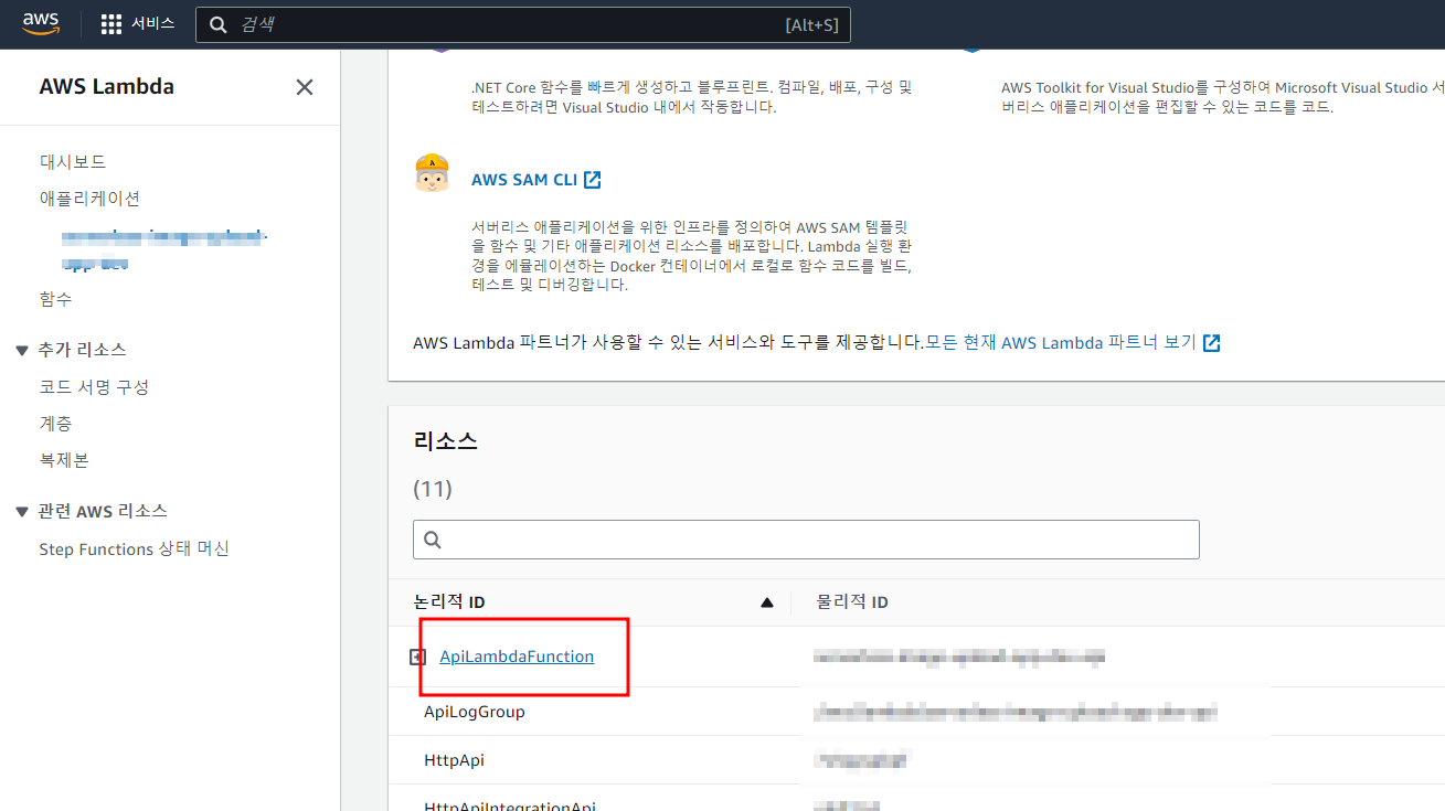 aws lambda 로 접속하여서 현재 진행하고 프로젝트로 들어간다.