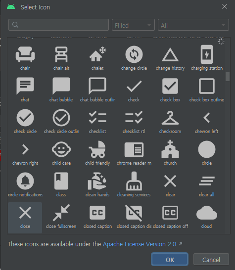 아이콘 이미지가 벡터 이미지로 생성된다.