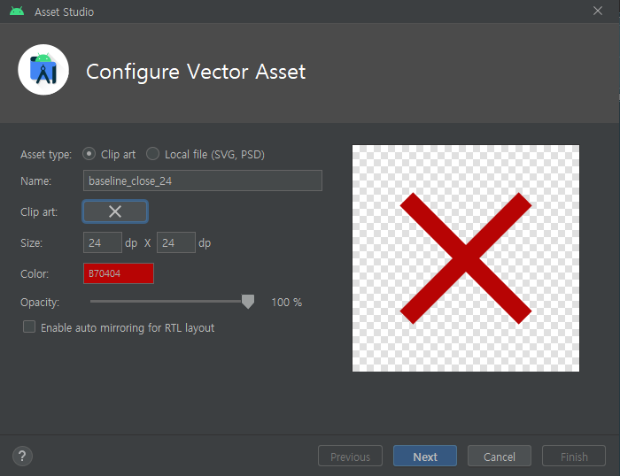 안드로이드에서 제공해주는 아이콘을 사용하려면 Clip art 를 선택한다.