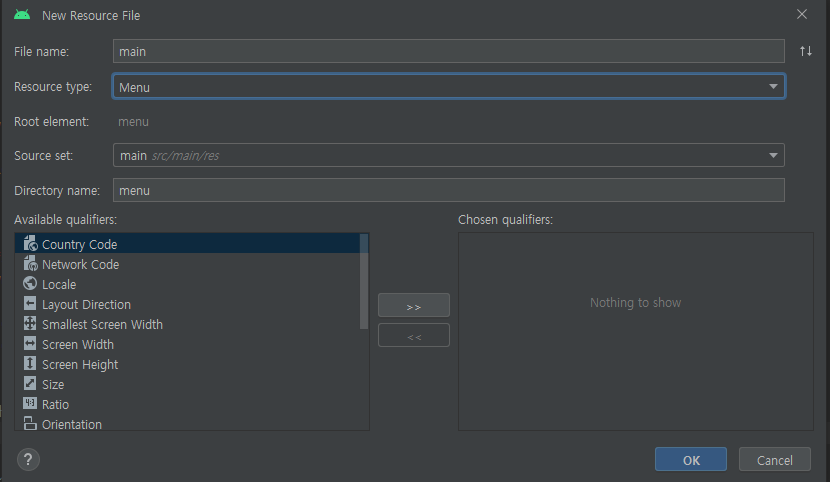 1. res 파일에 New - Android Resource File 을 선택한다.