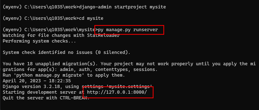 django-admin startproject mysite