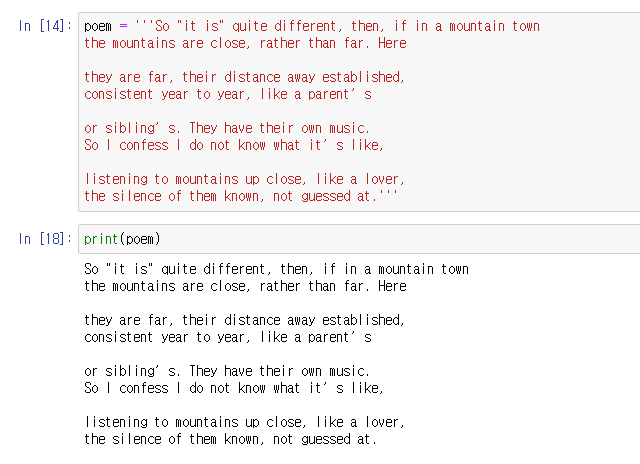3개의 단일부호로 ''' 문자열을 만들 수 있다. ( 줄을 바꿔가며 나타내는 긴 문자열을 표현할 수 있다. )