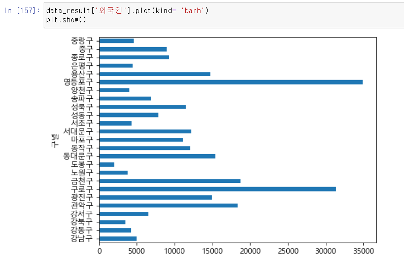 plot(kind= 'barh' 를 해주면 아래와같은 결과가 리턴된다.