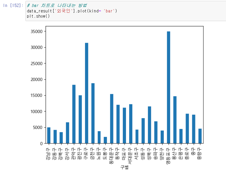kind= 'bar'를 하면 아래와같이 bar 차트로 결과를 리턴해준다.