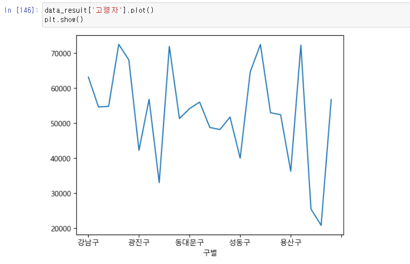 만약 특정 컬럼에 대한 데이터프레임 차트를 나타내고 싶을 땐 데이터 억세스를 해준 후에 plot() 함수를 이용하면 된다.