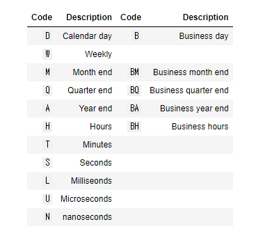 파라미터 freq 에 들어가는 값들은 아래의 그림을 참고하면 된다.