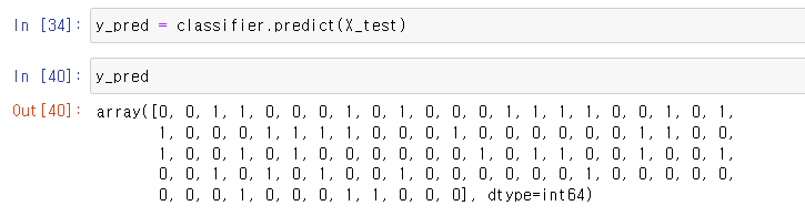 classfier.predict(X_test) 를 하여서 변수 y_pred 저장을 하였다.