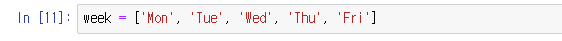 따라서 위 코드에서 인덱스의 값은 Mon은 0, Tue는 1 부터 시작을 한다.