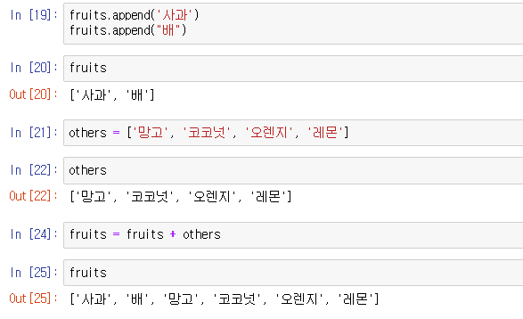 아래와같이 리스트들을 결합하고 싶다면 + 연산을 이용하여서 리스트들을 연결할 수 있다.