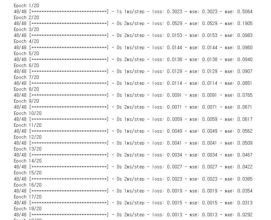 - 로스 펑션은 'mean_squared_error' 로 셋팅