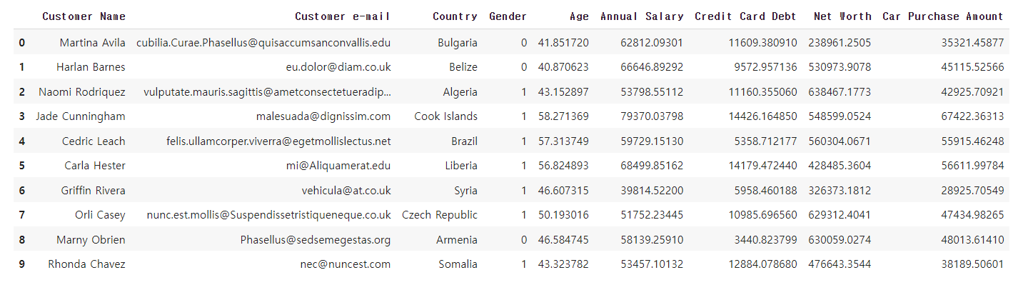 자동차 구매 가격을 예측하는 딥러닝 모델을 만들 것이다.