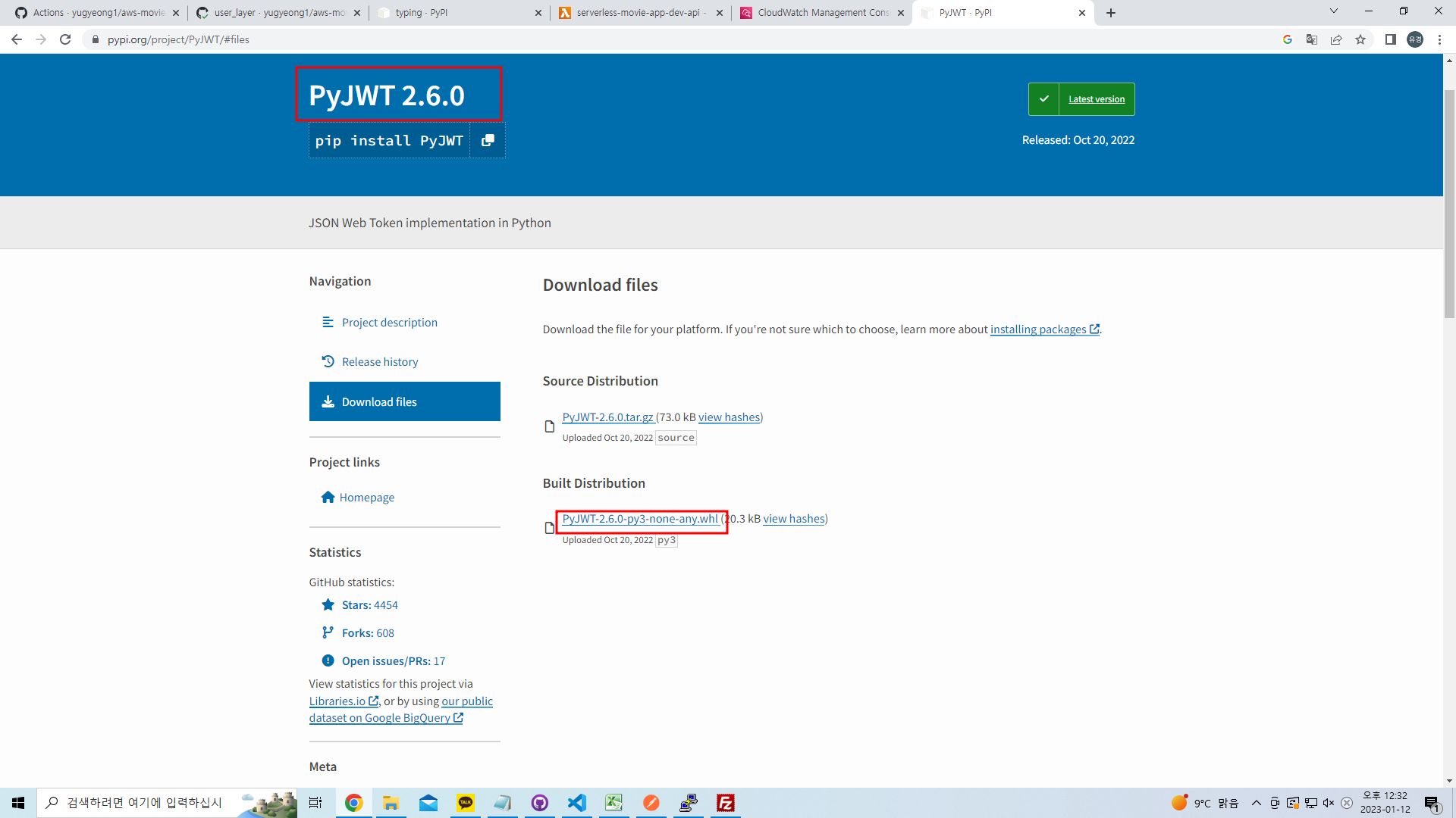 파이썬 라이브러리를 관리해주는 사이트인 PyPI로 이동을 한다.