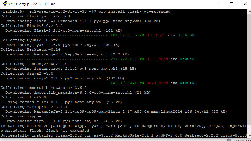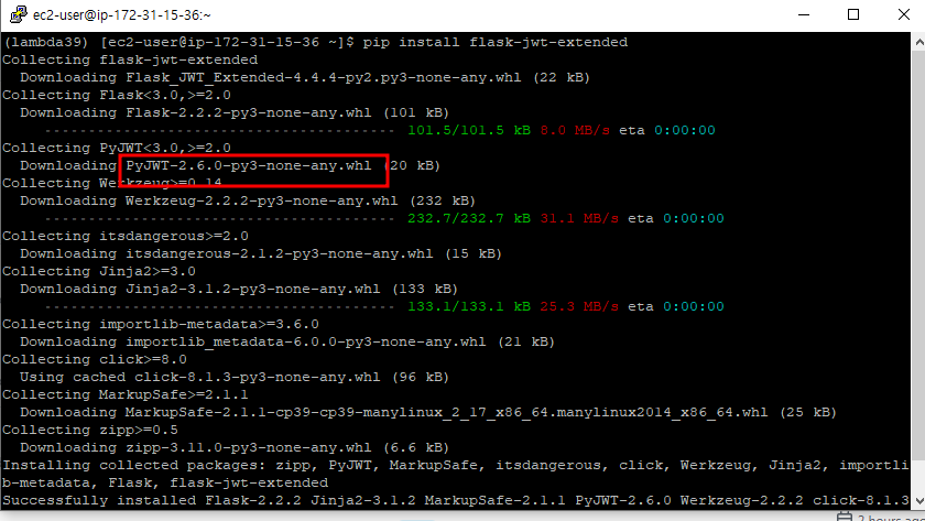 flask-jwt-extended 라이브러리를 설치했을 때의 결과이다.