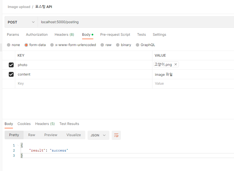 - Body - form-data - KEY 값 설정