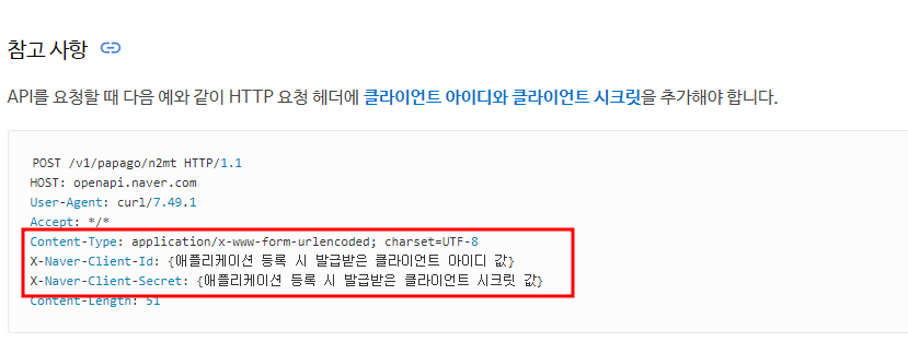 헤더에 클라이언트 아이디와 시크릿값말고 다른 값이 들어가는 경우도 있다.