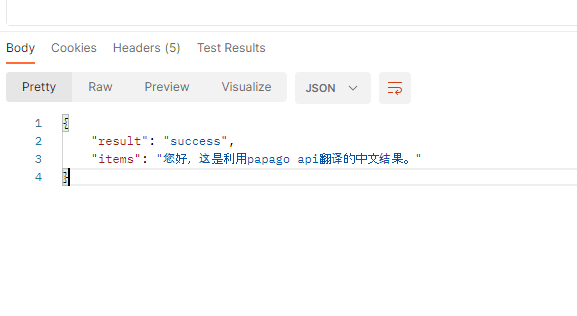 - 포스트맨에서 Body - raw - json 으로 설정하여서 작성한 데이터를 번역할 것이다.