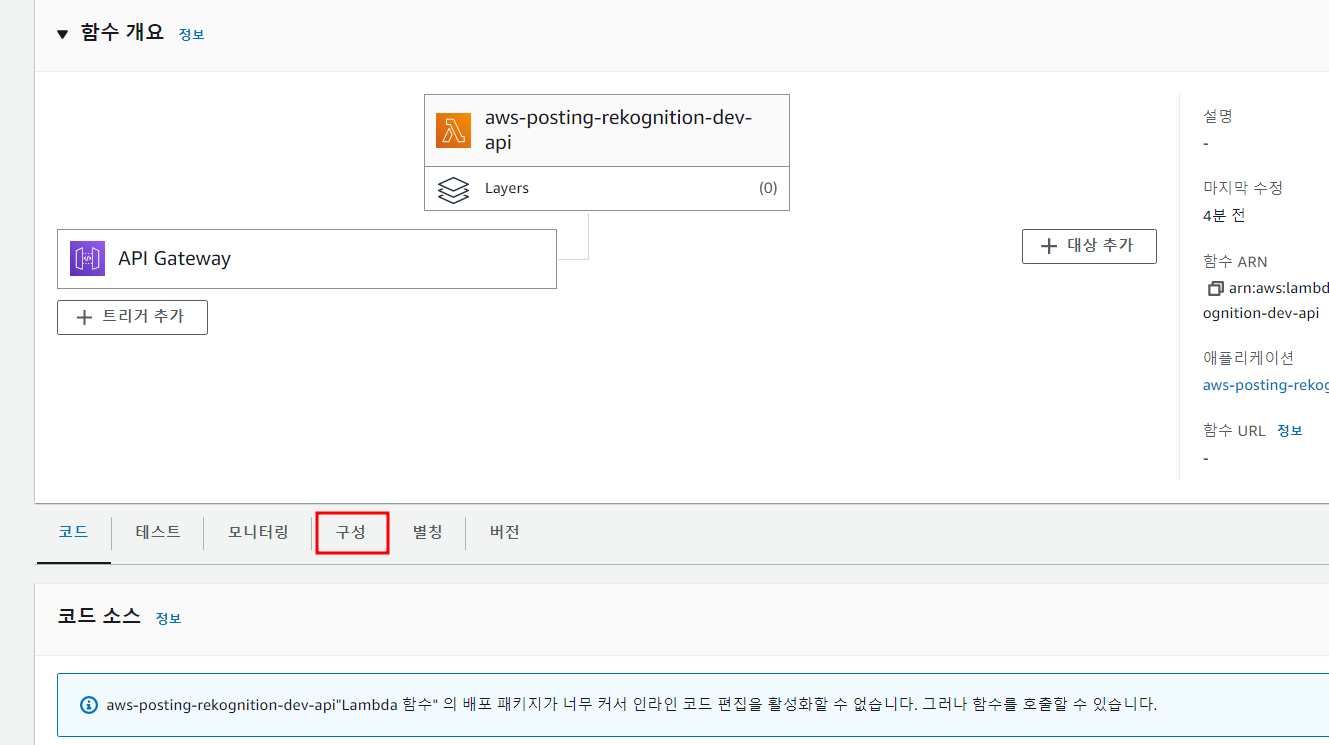 aws lambda 로 접속하여서 현재 진행하고 프로젝트로 들어간다.
