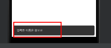 스낵바메시지는 토스트메시지와는 약간 다른 형태이다.