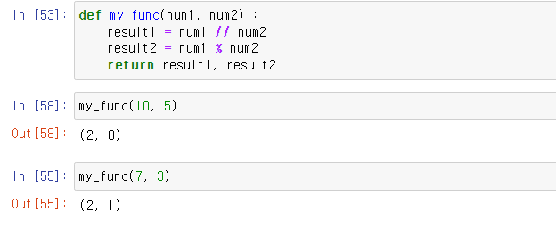 리턴 값이 두개인 경우에는 return 에 반환할 값을 두개 적어주면 된다.