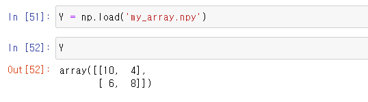 저장된 데이터를 불러올 때는 np.load() 함수를 이용한다.