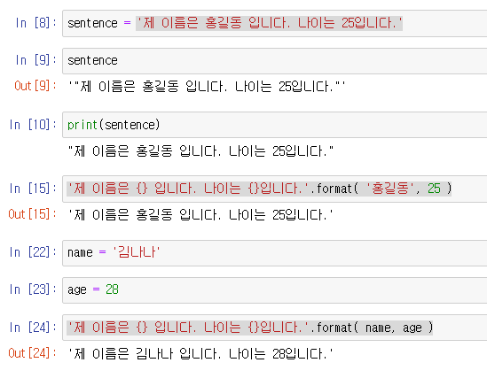 중괄호{} 와 format 함수를 이용하여서 pirnt문을 응용할 수 있다.