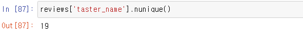 아래의 예시처럼 'taster_name' 컬럼의 고유한 값들의 데이터를 출력해준다.