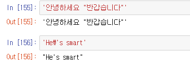 - 문자열은, 싱글퀏 ' ' 이나 더블퀏 " " (single or double quotes)으로 감싸야 한다.