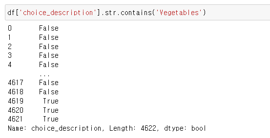 아래의 예시는 데이터프레임의 어떠한 컬럼에서 특정 문자를 포함하는지에 대한 내용이다.