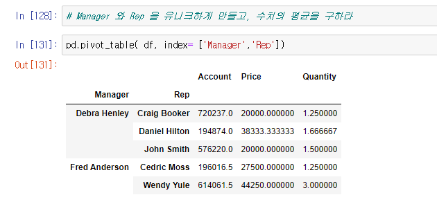 아래와같은 데이터프레임이 있을 때, 피봇테이블을 알아보자.