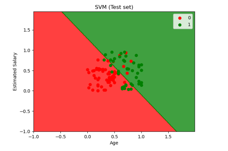아래의 데이터프레임을 가지고 SVM 인공지능으로 Purchased 결과를 예측할 것이다.
