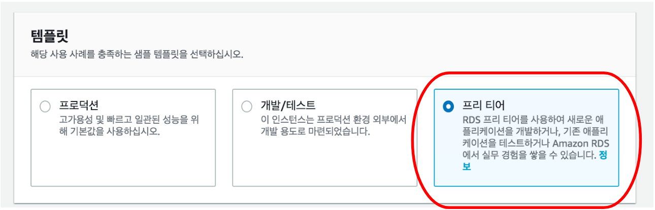 프리티어 버전으로 데이터베이스를 생성 할 것이기 때문에 프리티어를 선택해준다.
