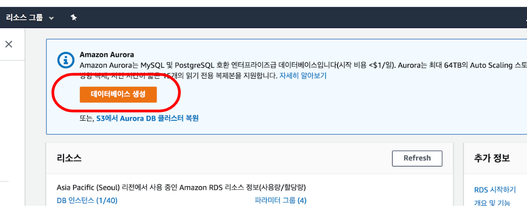 10분 정도 지나면 데이터베이스 생성이 완료된다.
