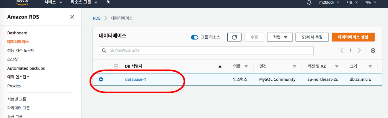 생성 완료되면, 아래의 DB식별자를 선택해준다