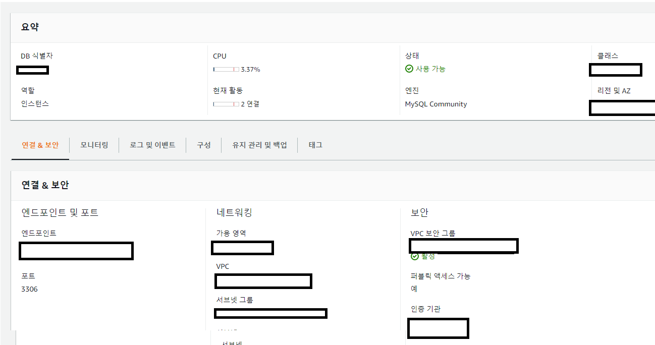 그리고 연결 & 보안 - 보안 - VPC 보안그룹 아래에 있는 링크를 클릭해준다.