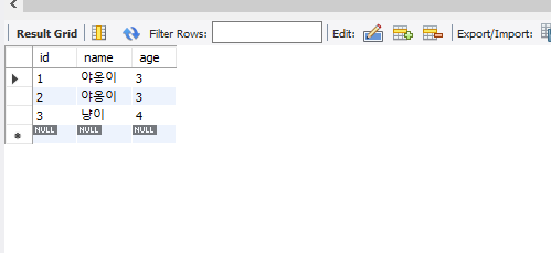 id 컬럼을 생성해서 테이블에 데이터를 넣으면 아래의 결과처럼 id 값이 데이터별로 하나씩 증가하게 된다.