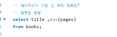 만약, 아래의 예시처럼 페이지의 수가 가장 긴 책의 title 을 가져오라는 문제가 있을 때,