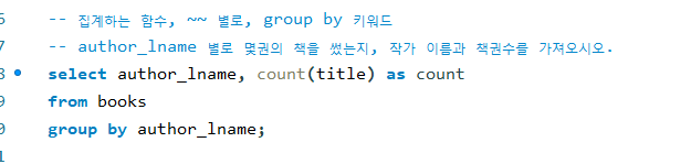 ~~ 별로 ~가 있는지 나타내시오 라는 문제가 있을 경우, group by 를 이용하면 된다.