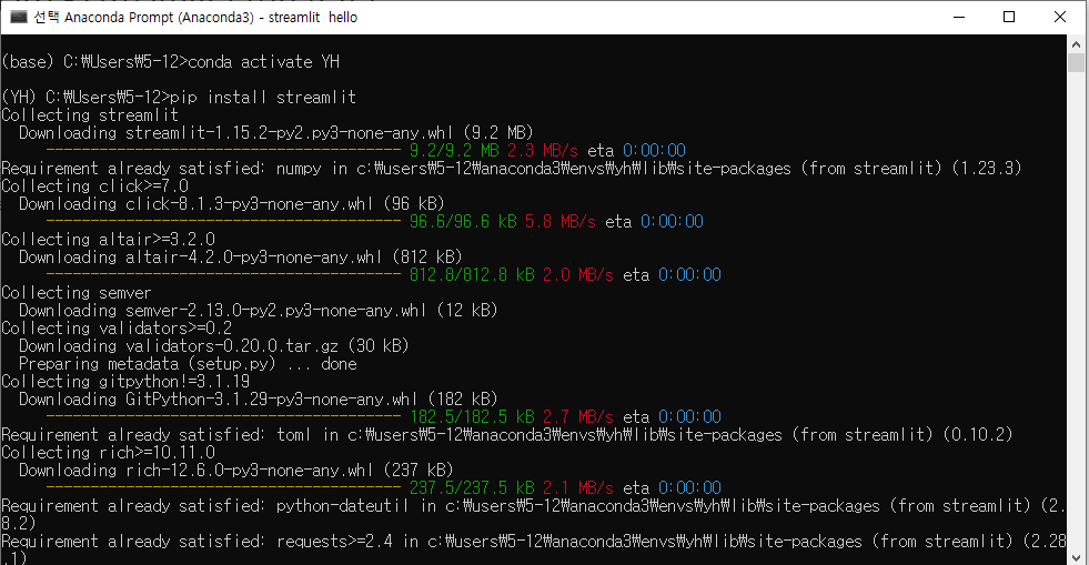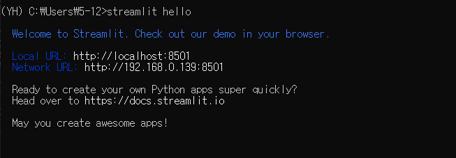 설치된 스트림릿 라이브러리가 잘 설치됐는지 작동시켜볼 때는